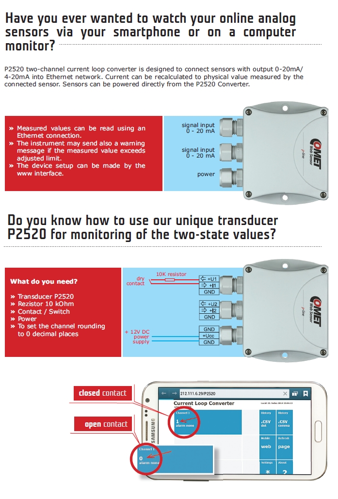 P2520 Zweikanal-Stromschleifenkonverter ist dafür ausgelegt, Sensoren mit dem Ausgang 0-20mA/4-20mA in ein Ethernet-Netzwerk einzubinden.