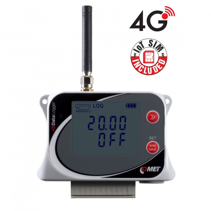 IoT Kabelloses Temperatur-Datenlogger für 4 externe Sonden, mit integriertem 4G-Modem und Flatrate-SIM-Karte