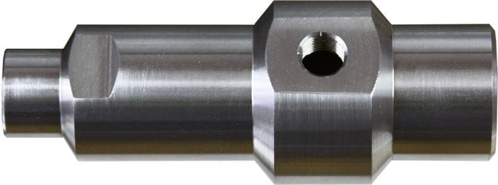 Durchflusskammer für Druckluftmessung bis 25 bar – Edelstahl DIN 1.4301 Ein- und Auslass-Anschluss – G1/8 Gewinde Feuchtigkeitssonden-Anschluss – G1/2 Gewinde Schraubkupplung nicht enthalten.