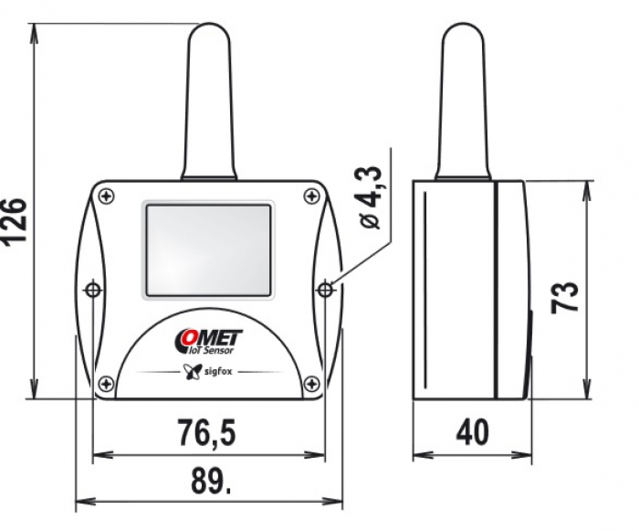 Das Gerät misst die Temperatur und Luftfeuchtigkeit über eine externe Sonde am Kabel – Sie können diese aus einem optionalen Zubehör wählen. Der Sensor zeichnet sich durch ein einfaches und kompaktes Design aus, mit der Möglichkeit der direkten Installation in den Messraum. Das Modell mit externer Kabelsonde eignet sich auch für Messungen in Bereichen, in denen das Risiko eines schlechten Sigfox-Empfangs besteht. Die Sonde kann am Messpunkt platziert werden und das Gerät selbst dort, wo ein besseres Signal erreichbar ist. Die Sondenlänge darf 30 Meter nicht überschreiten. Die Sonde kann mit einer geeigneten Sensorkappe auch unter anspruchsvolleren Bedingungen verwendet werden.