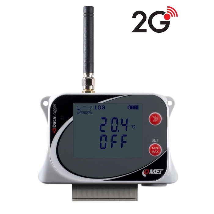 Der GSM-Datenlogger ist zur Aufzeichnung von zwei externen Temperatursonden und zwei Zweizustandseingängen ausgelegt. Bei Überschreitung der eingestellten Grenzwerte können SMS- und JSON-Nachrichten über eine GPRS-Datenverbindung gesendet werden. Messwerte können in den Internet-Speicher COMET Cloud, ein vollständiges Überwachungs-, Alarm- und Analysesystem, übertragen werden.